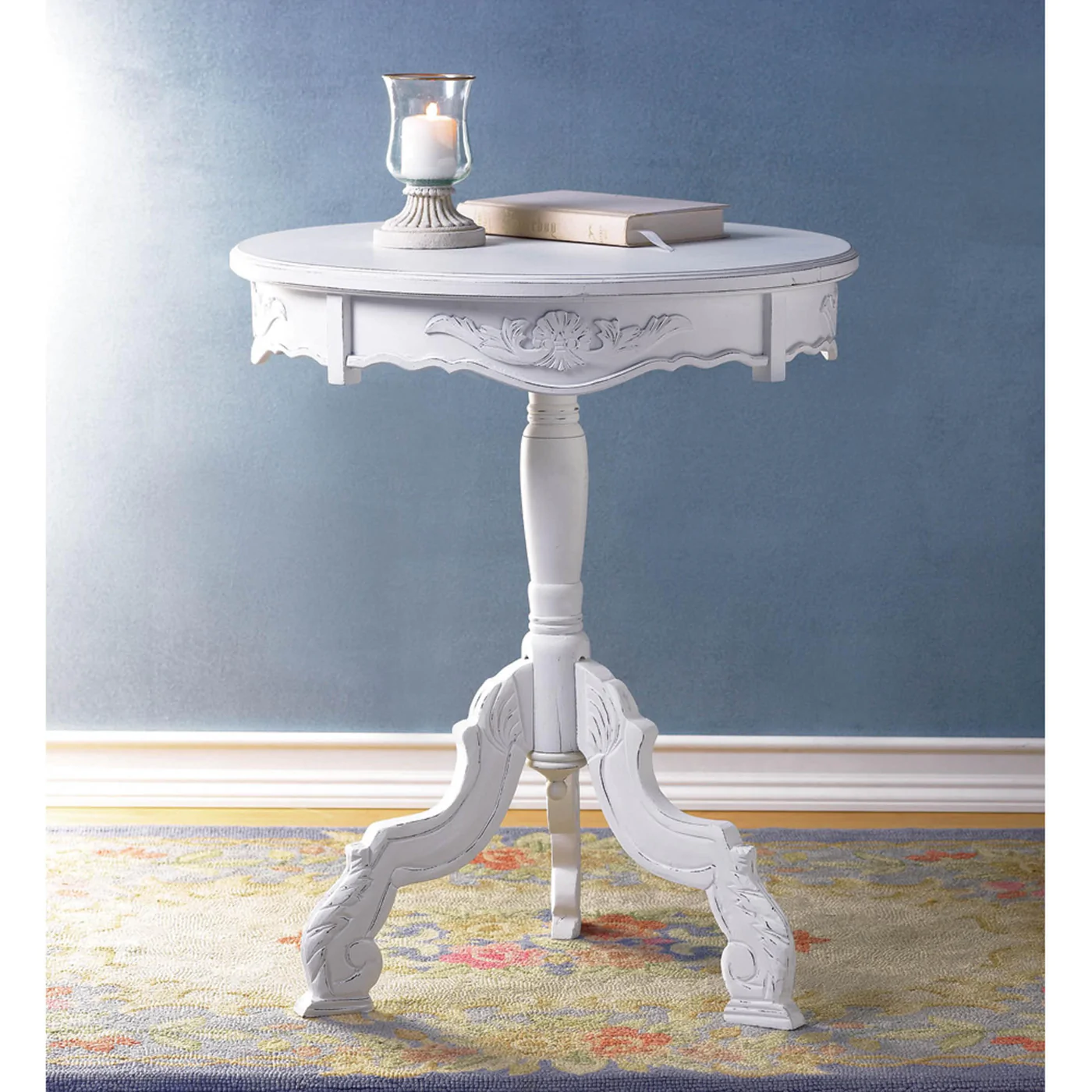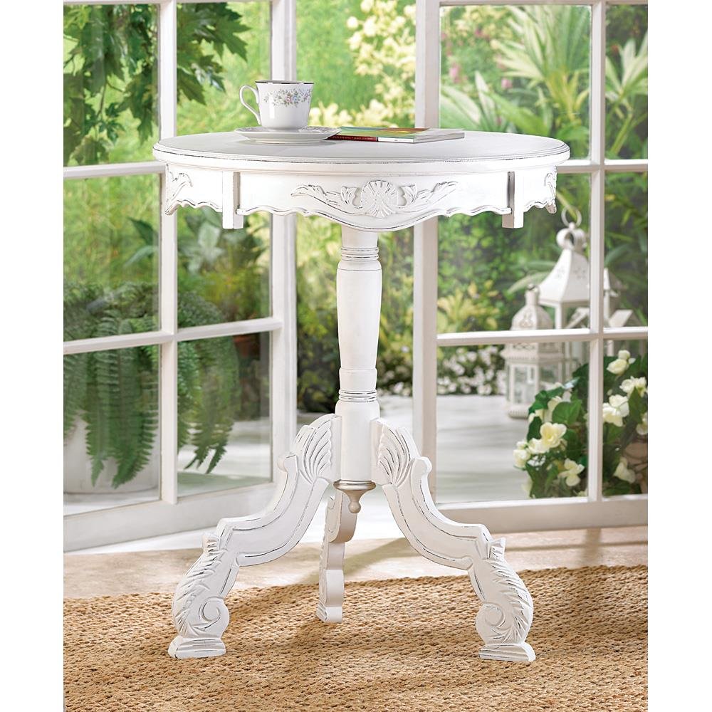 • Exquisitely carved flourishes add an air of refinement to this appealing accent table. It's the perfect blend of romantic design and functional beauty. This functional and stunning home décor will look amazing anywhere you display it!